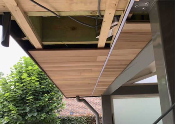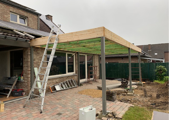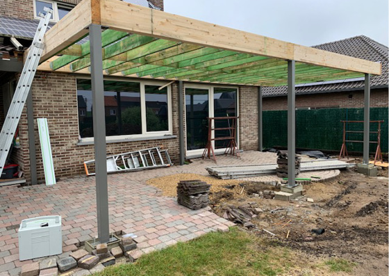 Jepa heeft een overdekt terras gerealiseerd met een stijlvolle oversteek, waardoor extra beschutting en schaduw wordt gecreëerd. De constructie combineert functionaliteit met esthetiek, waarbij gebruik is gemaakt van hoogwaardige materialen die zowel duurzaam als weerbestendig zijn.